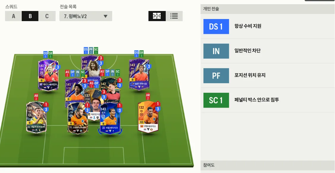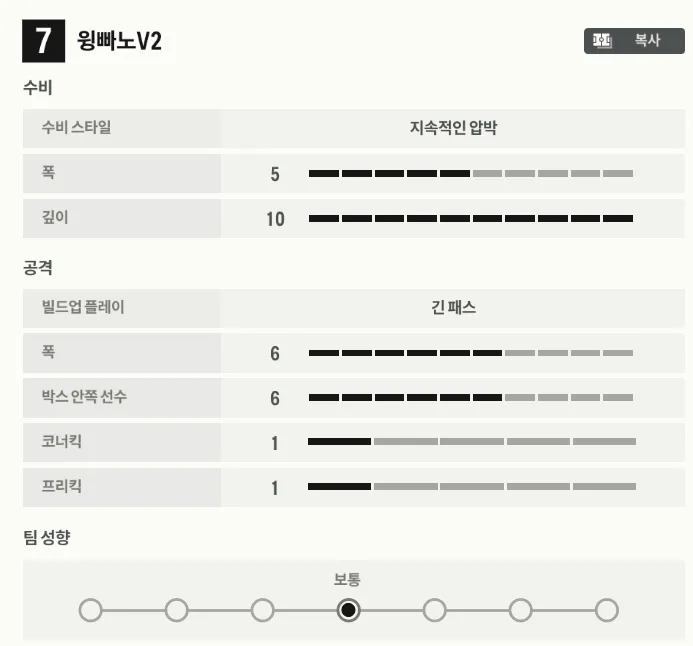 기존 전술과 다른건 윙의 개인전술인데 뒷침이외에는 밸런스로 맞췄습니다.
