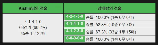 타 팀+지혁님 전술 쓰시는 분들한테는 반까이 정도 하고 윙 전술한테도 승률이 나쁘지 않게 뽑힙니다.
