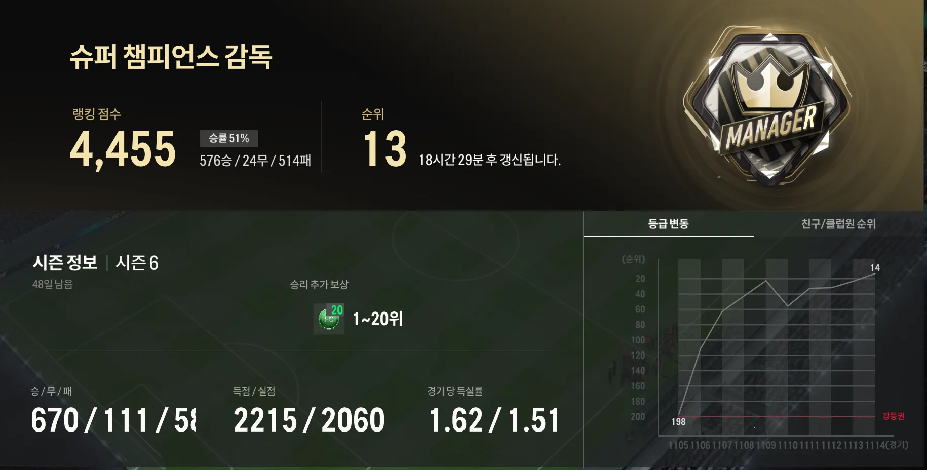 지금 세팅으로 4100점에서 단 17전 15승1무1패로 슈챔을 가버렸네요..?