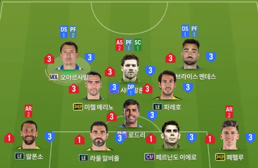 멘데스 또한 마찬가지로 알론소와 충돌을 우려해 자유역할로 두 명의 선수가 따로 공존하면서 침투하는 오야르사발를 지원하는 역할로 두었습니다.
